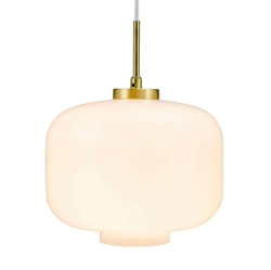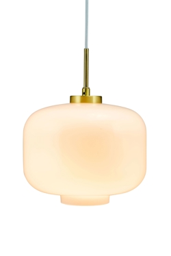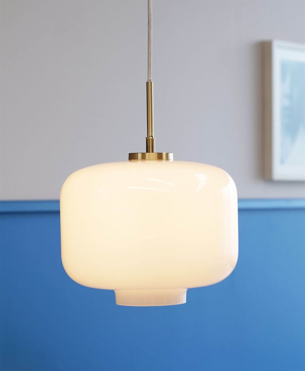 Arp hanglamp met lampenkap van opaalglas en ophanging in mat messing is klassiek design met een aangenaam licht. De lamp past in zowel moderne als klassieke interieurs en kan alleen of in groepen hangen in de woonkamer, keuken, slaapkamer of elke andere plek waar goede verlichting nodig is.