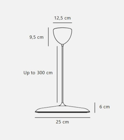 De hanglamp is verkrijgbaar in de maten Ø25 en Ø40. Er is ook een tafellamp in de serie.