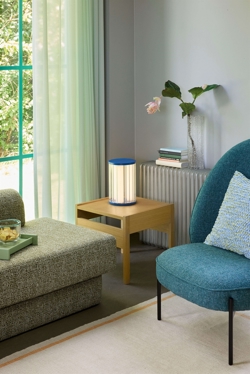 De tafellamp Aru brengt met de rustige blauwe nuance en organische vorm aangenaam en sfeervol licht in huis. Het ontwerp is zowel tijdloos als modern, met zachte rondingen die de lamp een harmonieuze, elegante en bijna sculpturale uitstraling geven.