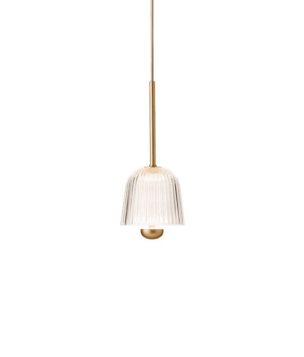 Nuura Asteea 1 hanglamp, satijn messing/geribbeld helder - ontworpen door Sofie Refer