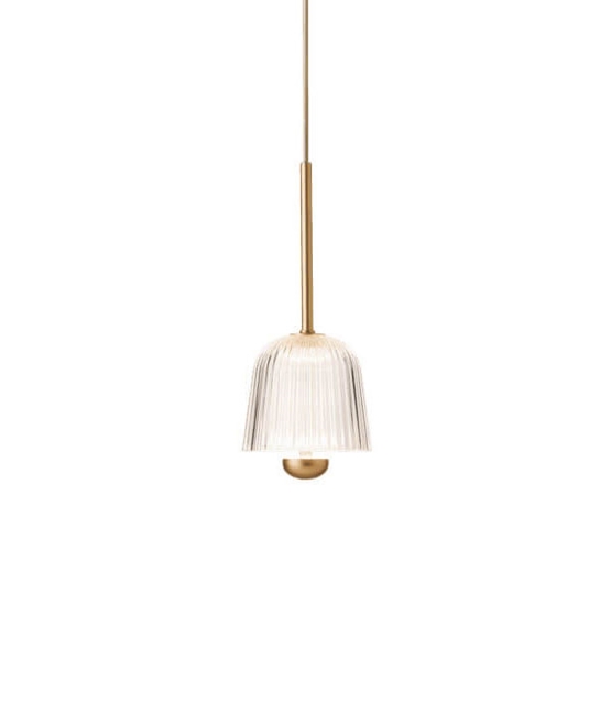 Asteea 1 hanglamp, satijn messing/geribbeld helder