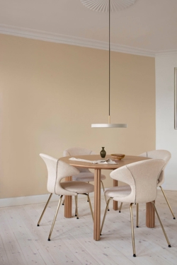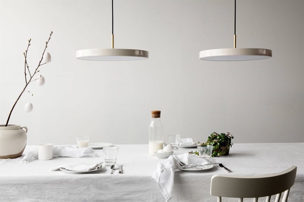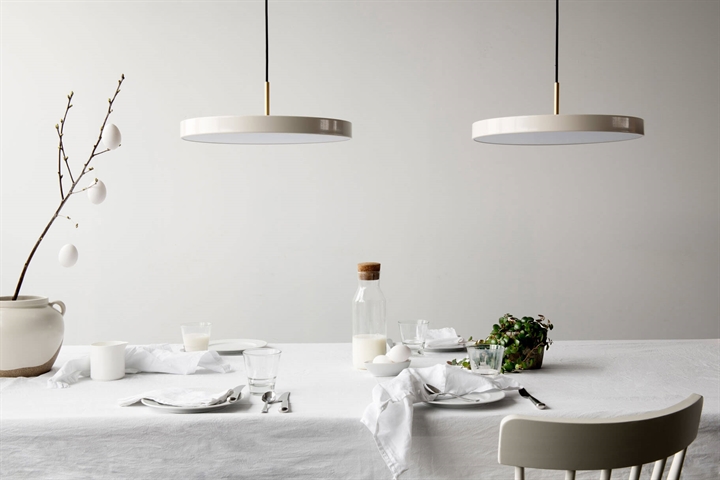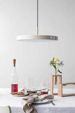 Asteria medium hanglamp verspreidt een zacht licht vanuit de geïntegreerde LED-lichtbron. De populaire lamp heeft een minimalistisch ontwerp met een eenvoudig en tijdloos karakter. De slanke en elegante vorm van de hanglamp maakt het een uitstekende keuze voor keukenruimtes, als lamp boven de eettafel of als verlichting in de slaapkamer, hal of woonkamer.