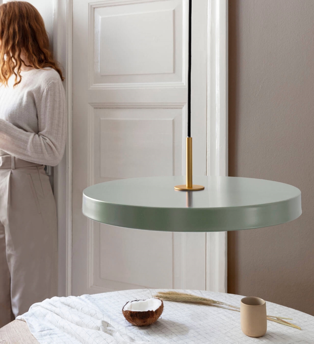 Umage Asteria medium hanglamp, tint olijf met top in messing - ontworpen door Søren Ravn Christensen