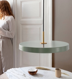 Asteria hanglamp is verkrijgbaar in de maten micro, mini of medium in verschillende kleuren met top in messing en voor mini en medium ook met top in staal of zwart. Er is bovendien een Plus-variant van de hanglamp in de maten mini en medium met ingebouwde dimmer en mogelijkheid voor montage in lichtrail.