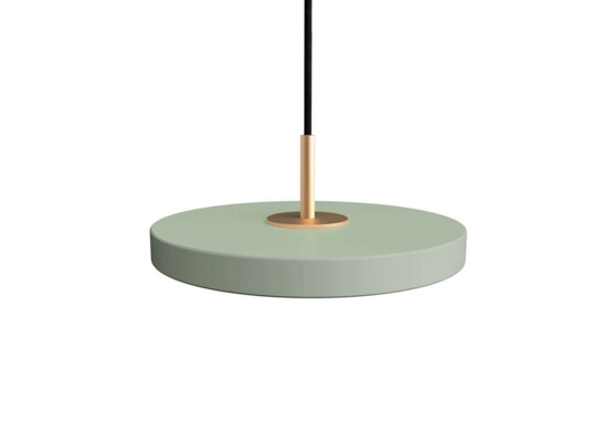 Umage Asteria micro hanglamp, tint olive met top in messing - ontworpen door Søren Ravn Christensen