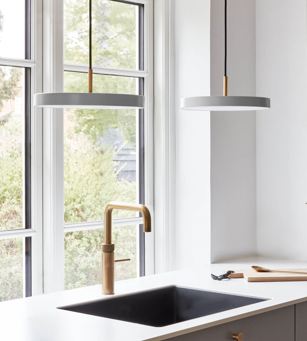 Asteria mini hanglamp in mist grijs verspreidt een zacht licht van de geïntegreerde LED-lichtbron. De populaire lamp heeft een minimalistisch ontwerp met een eenvoudig en tijdloos karakter. De slanke en elegante vorm van de hanglamp maakt het een uitstekende keuze voor keukenruimtes, als lamp boven de eettafel of als verlichting in de slaapkamer, hal of woonkamer.
