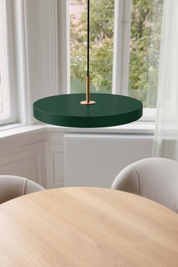 Asteria Plus medium in bosgroen is een variant van de populaire Asteria hanglamp, die is uitgerust met een ingebouwde dimmer en de mogelijkheid voor montage in een lichtrail. De extra mogelijkheden met Asteria Plus vergroten de flexibiliteit en maken samen met het elegante minimalistische ontwerp de lamp tot een voor de hand liggende keuze voor zowel kantoorverlichting, keukenruimtes of lamp boven de eettafel.