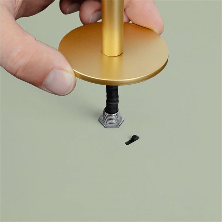Asteria Plus heeft een geïntegreerde LED-lichtbron en straalt een zacht licht uit, dat met de verborgen ingebouwde dimmer op de bovenkant van de kap kan worden ingesteld op een kleurtemperatuur van 2400K, 2700K of 3000K. Dit maakt het eenvoudig om het licht aan te passen en de gewenste sfeer in de ruimte te creëren.