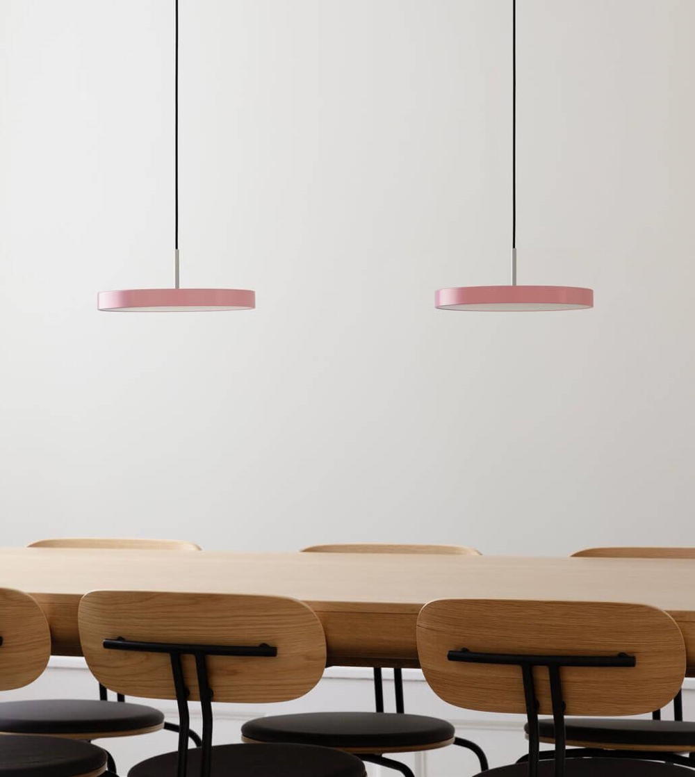 Asteria Plus mini in roze is een variant van de populaire Asteria hanglamp, die is uitgerust met een ingebouwde dimmer en de mogelijkheid voor montage in een lichtrail. De extra mogelijkheden met Asteria Plus vergroten de flexibiliteit en maken samen met het elegante minimalistische ontwerp de lamp tot een voor de hand liggende keuze voor zowel kantoorverlichting, keukenruimtes of lamp boven de eettafel.