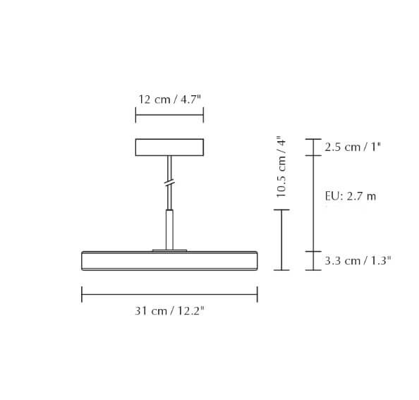 Asteria Plus heeft een geïntegreerde LED-lichtbron en straalt een zacht licht uit, dat met de verborgen ingebouwde dimmer op de bovenkant van de kap kan worden ingesteld op een kleurtemperatuur van 2400K, 2700K of 3000K. Dit maakt het eenvoudig om het licht aan te passen en de gewenste sfeer in de ruimte te creëren.
