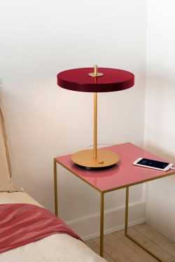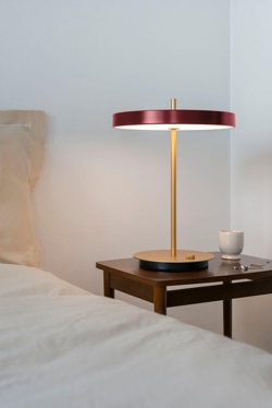 Umage Asteria tafellamp m/USB, ruby rood/messing - ontworpen door Søren Ravn Christensen
