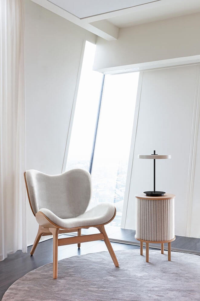 Asteria de tafellamp heeft een minimalistisch design met een eenvoudig en tijdloos karakter. De slanke en elegante vorm maakt de lamp ideaal als verlichting in een boekenkast, lamp op het nachtkastje of werklicht op het bureau. Hier zal de verborgen USB-poort aan de basis van de lamp ook van pas komen wanneer je je telefoon of tablet moet opladen.