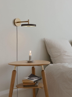 Asteria de wandlamp is verkrijgbaar met een korte of een lange extra flexibele lampenarm in messing met kap in verschillende kleuren. Deze variant is met snoer en stekker voor stopcontact. Er is ook een hardwired variant voor directe montage op een lampuitgang.