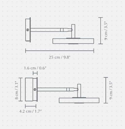 De korte Asteria wandlamp heeft een minimalistisch design met een tijdloze uitstraling. De lamp heeft een geïntegreerde LED-lichtbron met een aangenaam licht, dat kan worden gedimd via een discrete knop aan de onderkant van de kap.