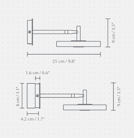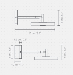 Asteria wandlamp is verkrijgbaar met een korte of met een lange extra flexibele lampenarm in messing met kap in verschillende kleuren. Deze variant is een hardwired variant voor directe montage op een lampuitgang. Er is ook een variant met snoer en stekker voor stopcontact.