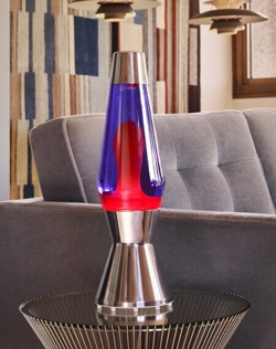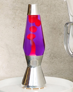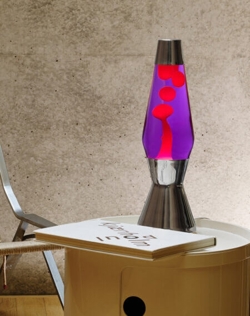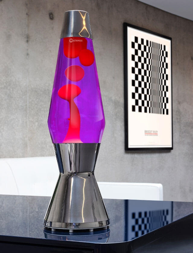 De originele lavalamp Astro ontworpen in 1963 door Edward Craven Walker, die de lavalamp uitvond en Mathmos oprichtte. Deze variant van het designicoon heeft een handgesponnen basis en top van aluminium met gepolijste zilverafwerking. De fles in violet met rode lava is handmatig gevuld en gebaseerd op Mathmos' unieke lavalamprecept, dat tot 2.000 uur gebruik biedt voordat de fles moet worden vervangen.
