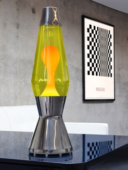 De originele lavalamp Astro ontworpen in 1963 door Edward Craven Walker, die de lavalamp uitvond en Mathmos oprichtte. Deze variant van het designicoon heeft een handgesponnen basis en top van aluminium met gepolijste zilveren afwerking. De fles in geel met oranje lava is met de hand gevuld en gebaseerd op Mathmos’ unieke lavalamprecept, dat tot 2.000 uur gebruik biedt voordat de fles moet worden vervangen.