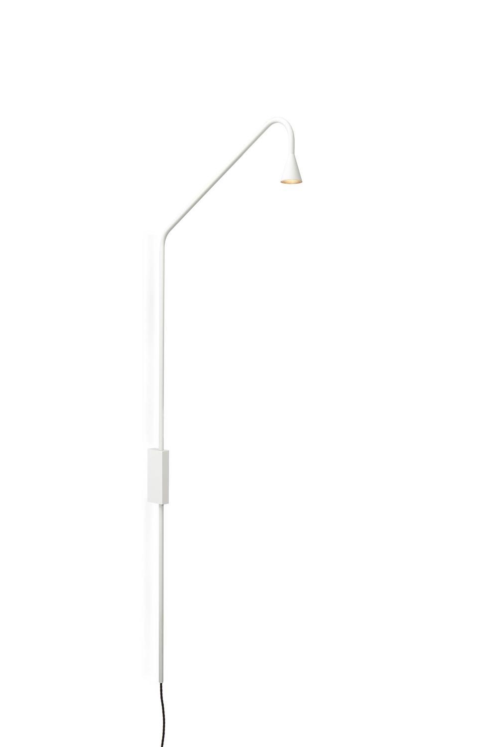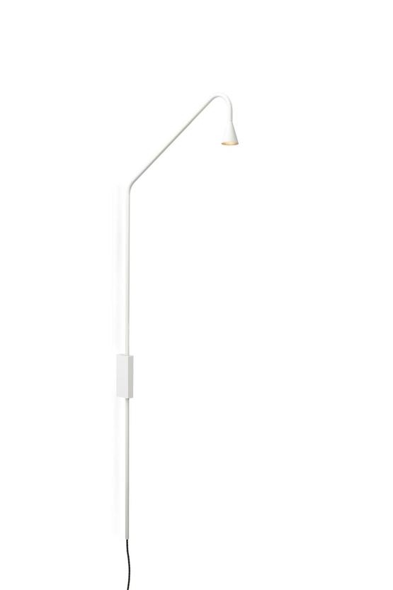 De wandlamp is verkrijgbaar in de kleuren zwart, messing, wit en gunmetal.