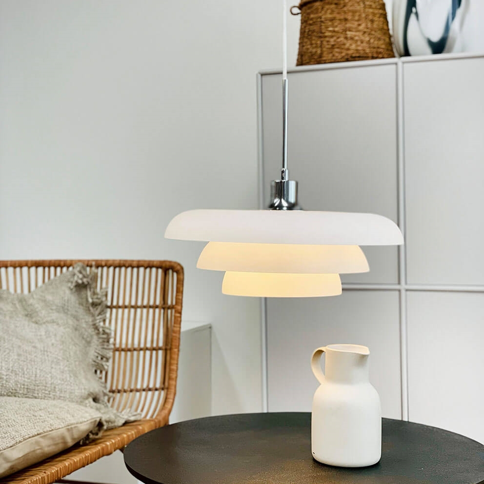 Ava hanglamp in opaal en chroom is Deens design dat zowel in klassieke als moderne interieurs goed zal passen. De hanglamp heeft een zacht en aangenaam licht en kan met zijn minimalistische design bijvoorbeeld in de keuken, woonkamer of boven de eettafel worden gebruikt.