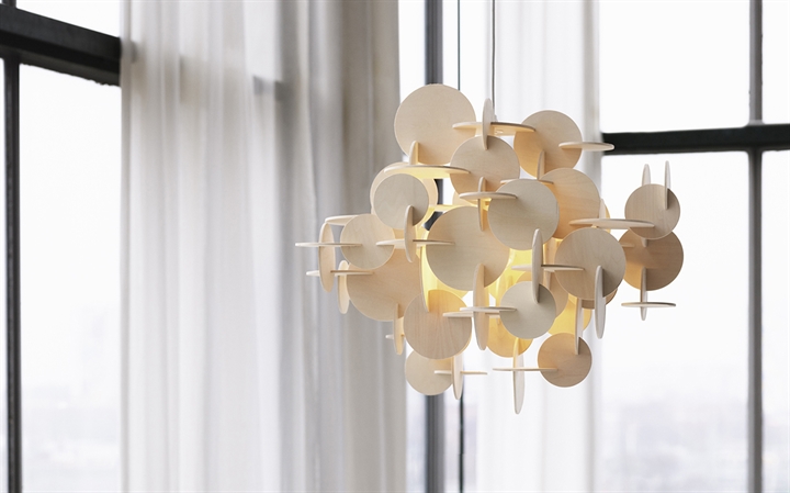 Normann Copenhagen Bau hanglamp - Klein, natuur (lindehout) - ontworpen door Vibeke Fonnesberg Schmidt.