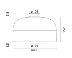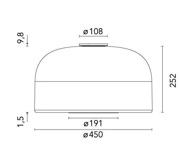 De kap bestaat uit opaalglas, opgebouwd als een sandwich van drie lagen glas met de witte laag tussen twee transparante lagen. De opening aan de onderkant van de kap is beschermd door een witte ring van aluminium.