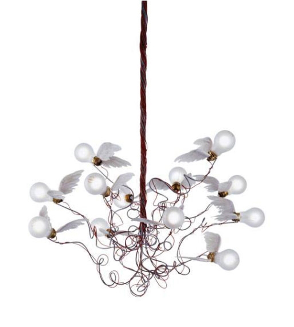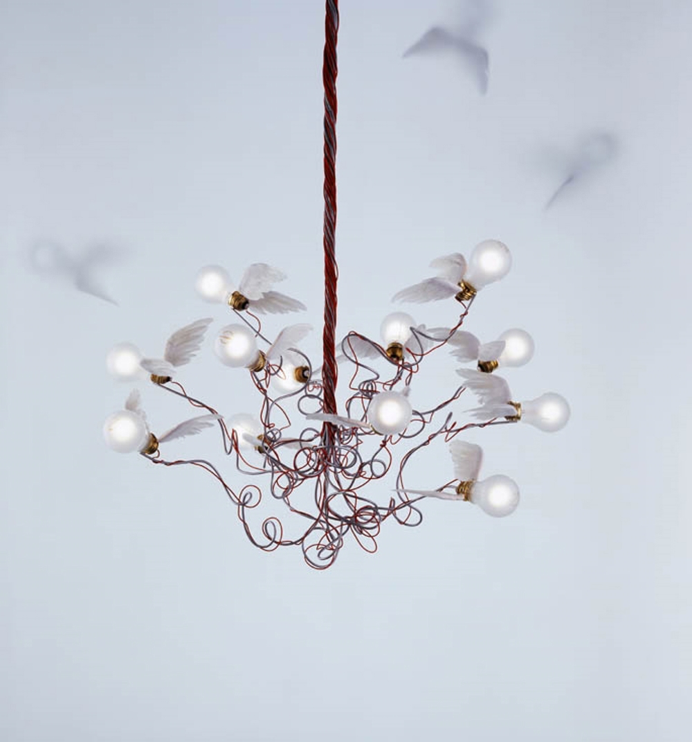 Birdie bestaat uit twaalf LED-lichtbronnen met vleugels van ganzendons.