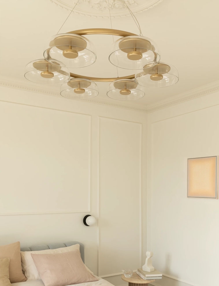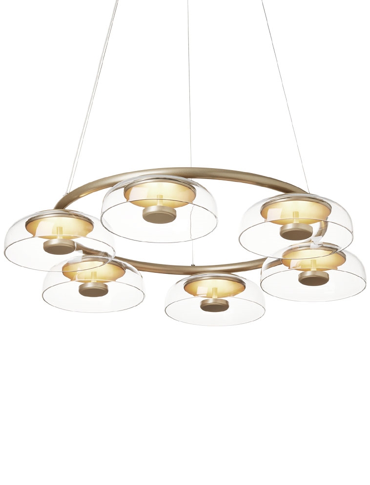 Nuura Blossi 6 kroonluchter, nordic goud/helder - ontworpen door Sofie Refer