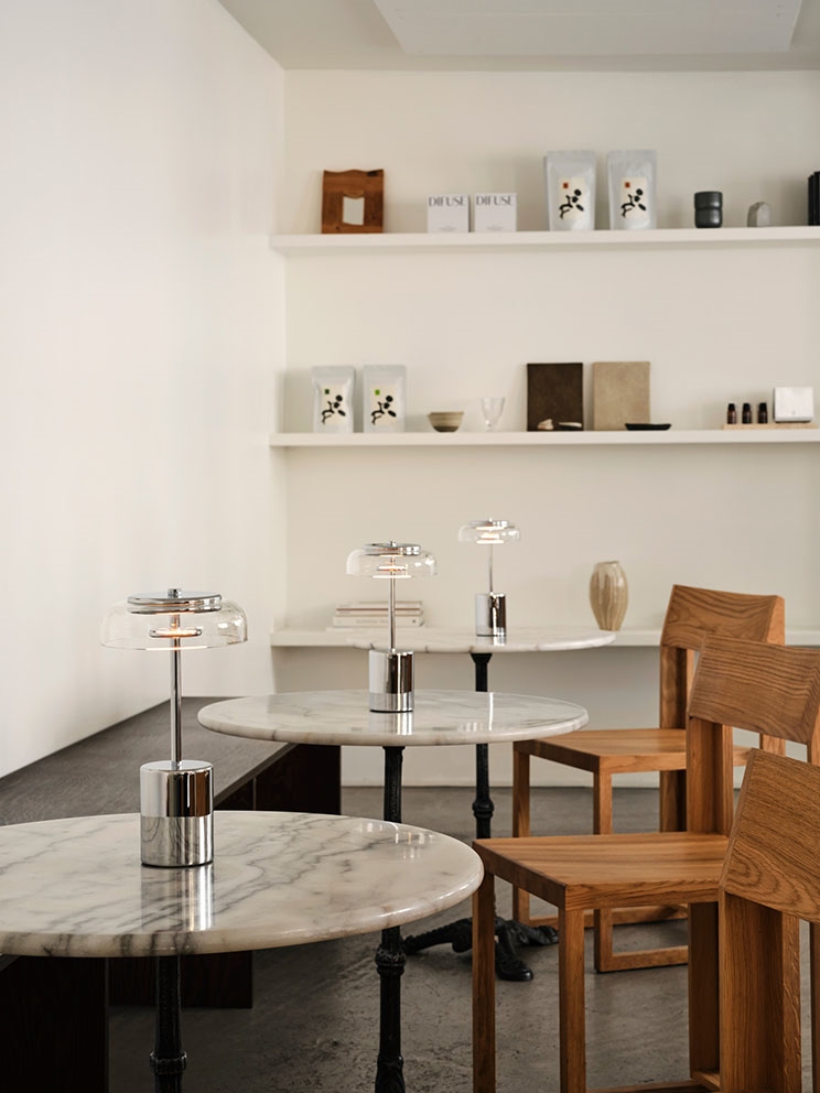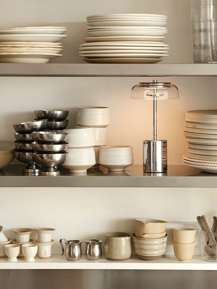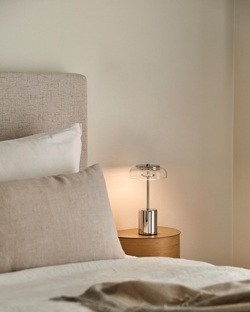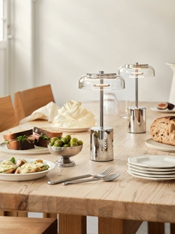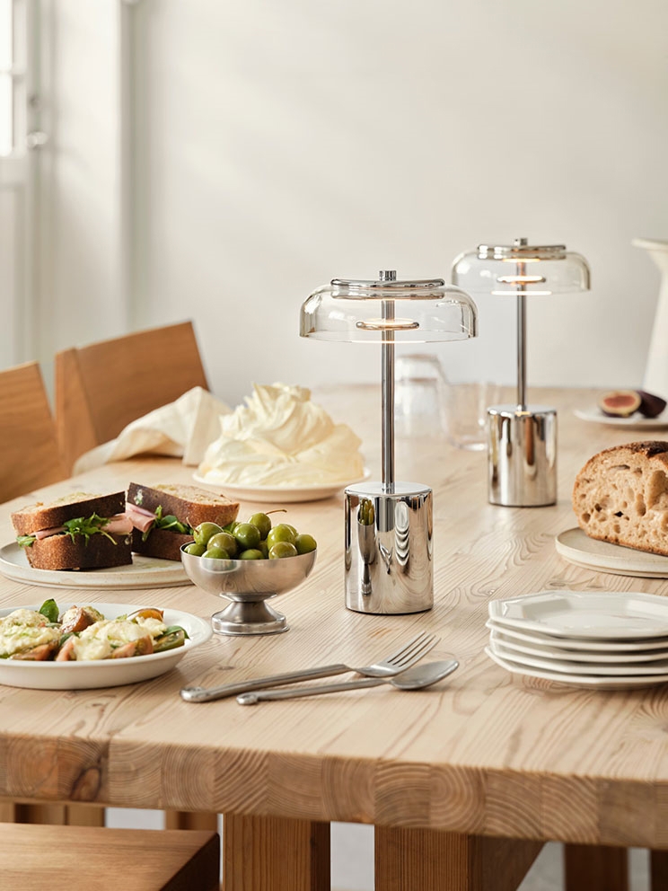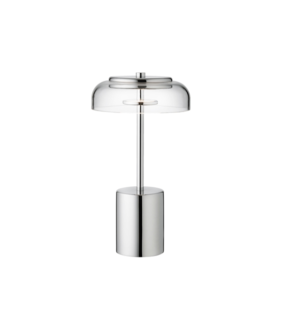 Nuura Blossi Mini Portable tafellamp/batterijlamp, chroom/helder - ontworpen door Sofie Refer