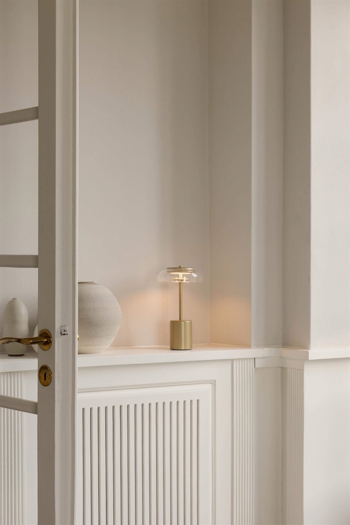 Nuura Blossi tafellamp / batterijlamp mini draagbaar, nordic goud/helder - ontworpen door Sofie Refer