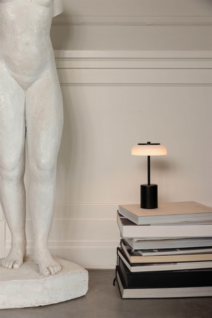 Blossi tafellamp / batterijlamp mini draagbaar, zwart/opaal