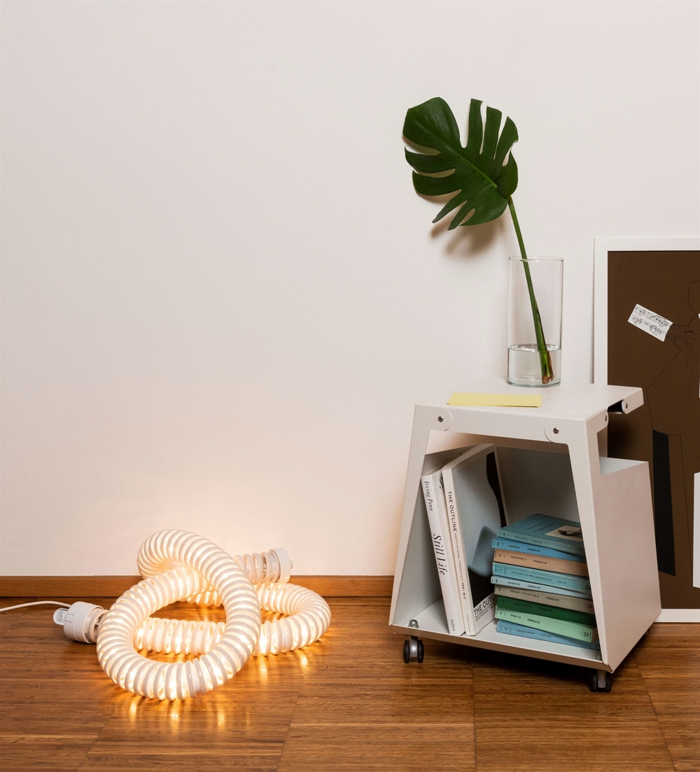 De lamp is zeer functioneel, omdat hij uiterst flexibel is en je hem op alle mogelijke manieren kunt draaien en buigen. Je kunt tot 4 lampen aan elkaar koppelen om het gevoel van oneindigheid te versterken.
