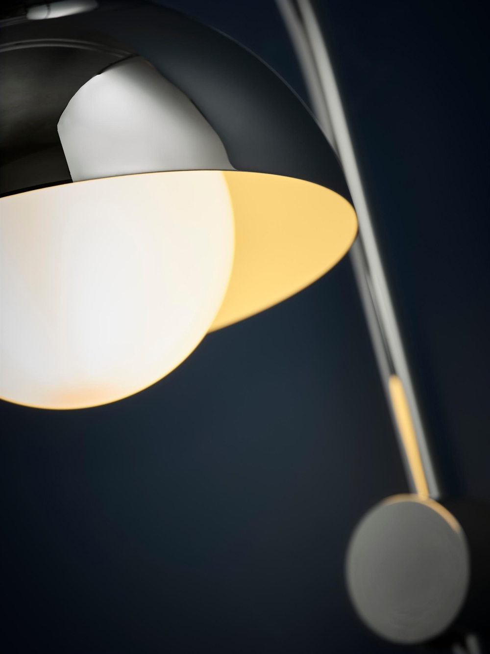 De kap van de Butterfly wandlamp bestaat uit drie halve bollen, die omgekeerd ten opzichte van elkaar zijn geplaatst. Ze creëren een spannende, contrasterende harmonie met elkaar, geïnspireerd door de Scandinavische designtaal.