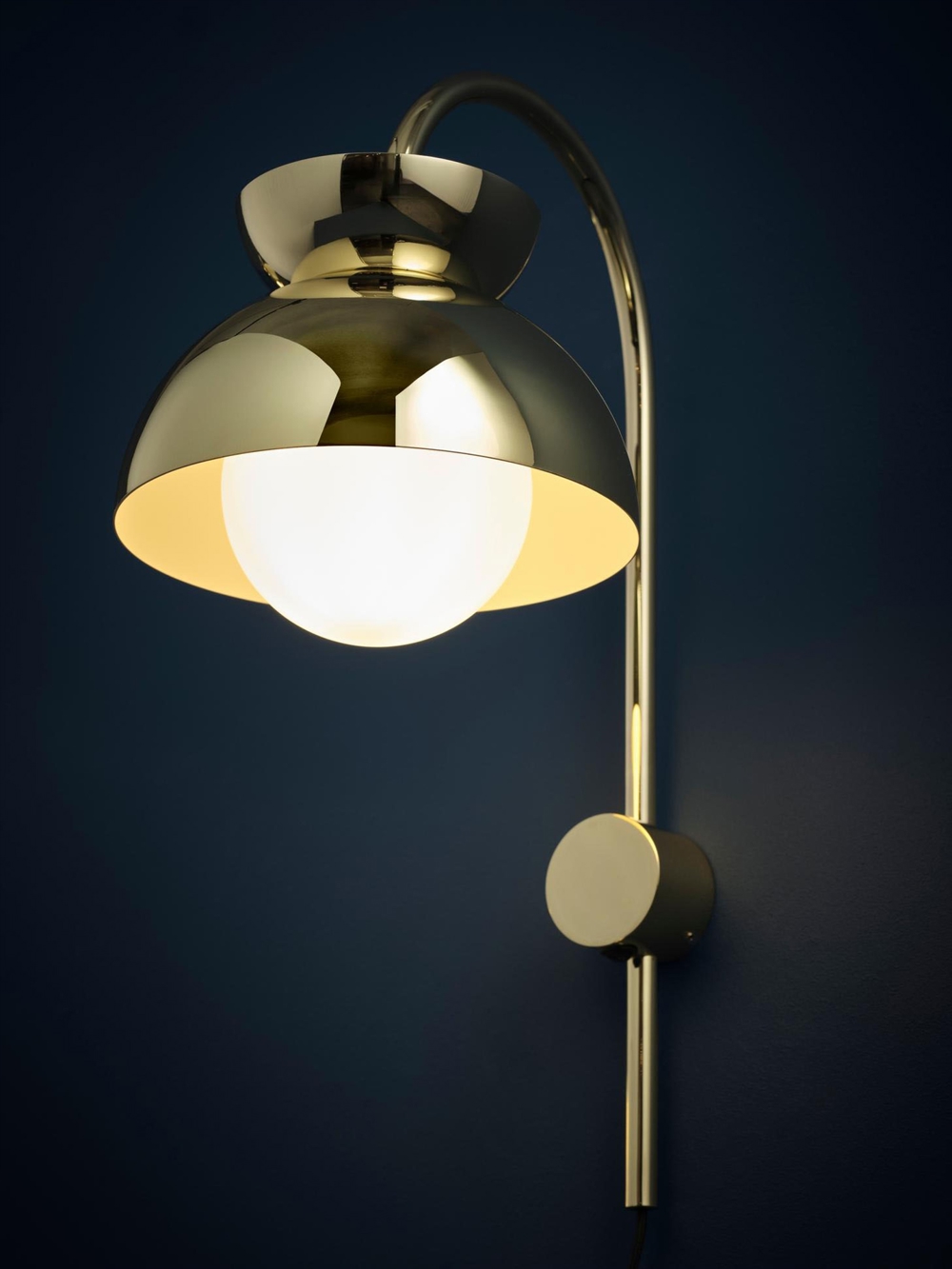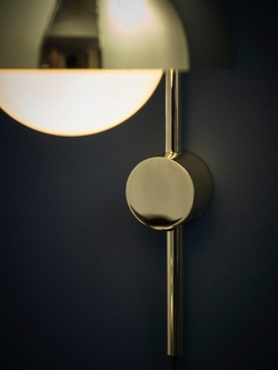 Butterfly wandlamp heeft een kap die bestaat uit drie halve bollen, die omgekeerd ten opzichte van elkaar zijn geplaatst. Ze creëren een spannende, contrasterende harmonie met elkaar, geïnspireerd door de Scandinavische designstijl.