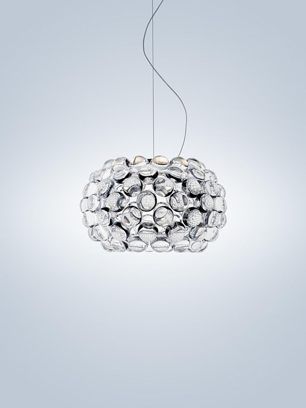 De kap van de Caboche Plus Piccola hanglamp bestaat uit acrylballen. Het speciale ontwerp zorgt voor een fantastische mozaïek lichtbreking, die het licht van de centrale lichtbron versterkt.