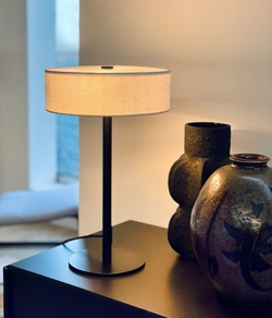 De tafellamp Calix met ronde lampenkap is stijlvol Deens design met een moderne Scandinavische uitstraling. De stoffen kap met discrete bovenplaat zorgt voor een gedempte en gebalanceerde verlichting met een zacht en aangenaam licht. Perfect om een warme sfeer te creëren in de woonkamer of elke andere ruimte. De schakelaar is praktisch geplaatst op het snoer.