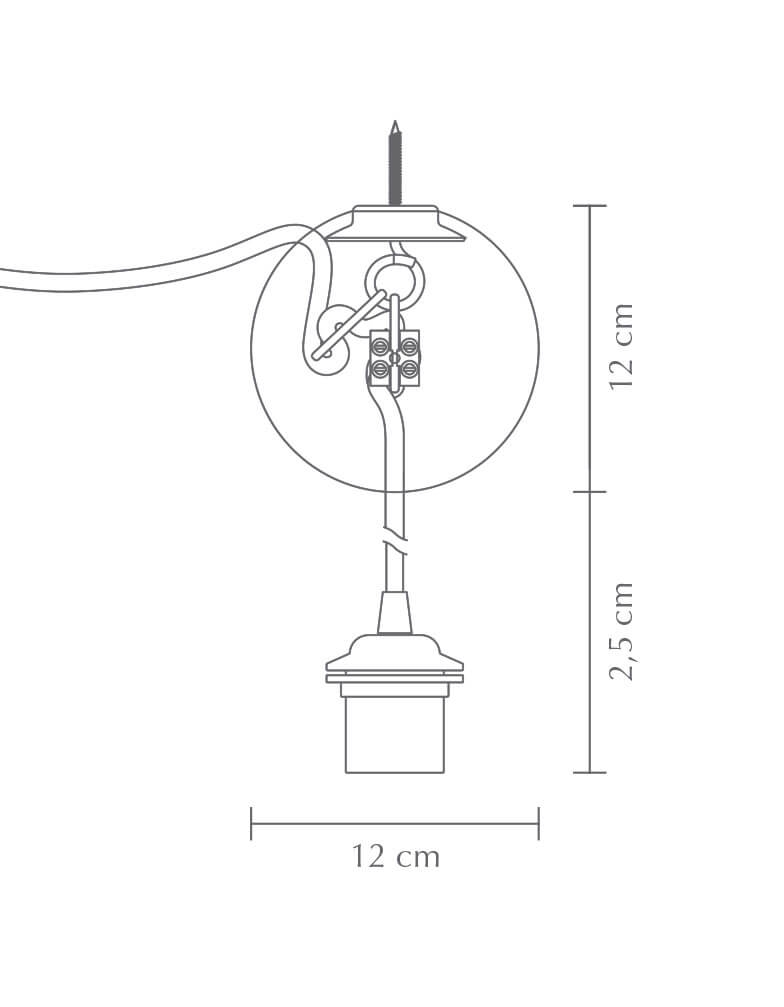 Deze Cannonball Cluster-ophanging met twee fittingen heeft een bolvormige baldakijn met een tijdloos en stijlvol uiterlijk, dat tevens de mogelijkheid biedt om de lengte van de snoeren aan te passen door een stuk in de baldakijn te verbergen. Discrete lampophanging met twee E27-fittingen, baldakijn/rozet in siliconen en twee stoffen snoeren van 2,5 meter. Er zijn ook varianten met drie fittingen en met een enkele fitting.