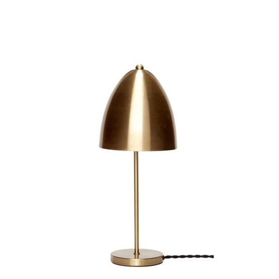 Cap tafellamp heeft een mooie messingkleur en een brede kap met een paddenstoelachtige vorm. De kap zorgt ervoor dat het licht verblindingsvrij naar beneden schijnt, en de kleur en vorm van de lamp geven het een klassieke vintage uitstraling.