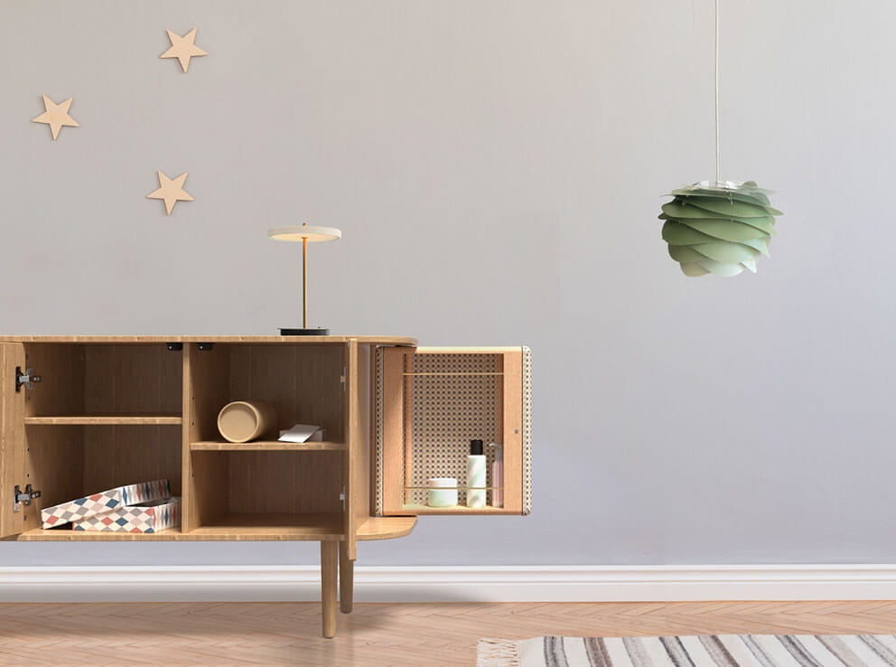 Carmina moet worden gecombineerd met een ophangsysteem of standaard, die apart worden verkocht. Kies bijvoorbeeld uit de E27-ophangsystemen Cannonball, Cannonball Cluster 2 en 3, Cord Set, Cord Set Pro of Rosette van Umage. De wandophangsystemen Willow, vloer- of tafelstandaards Tripod of Santé wandbasis en Santé vloer- of tafelstandaards van Umage passen ook goed bij de Carmina mini.