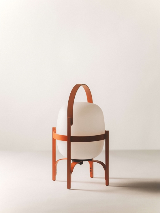 Cestita Alubat batterijlamp/tafellamp in roodachtig oranje - ontworpen door Miguel Milá voor Santa & Cole