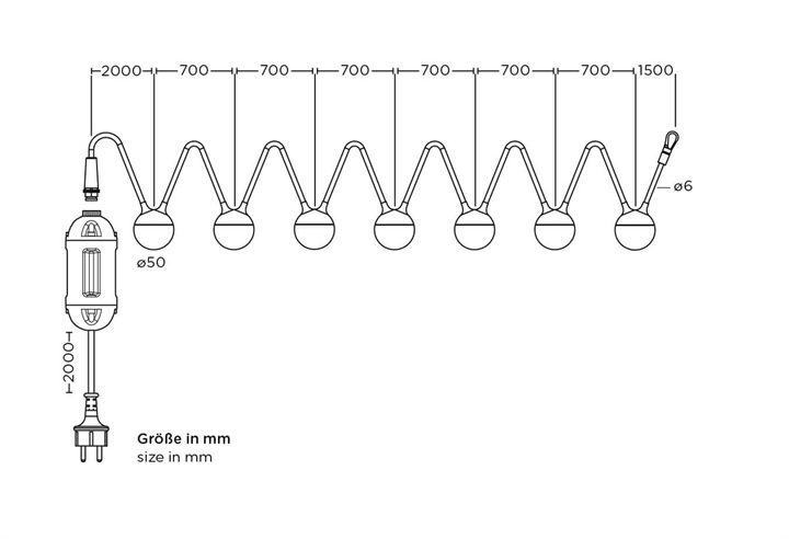 Cherry Bubbls Plug is een LED-lichtsnoer dat ideaal is om sfeer en ambiance buiten te creëren. De ketting bestaat uit zeven pendels met rookglas en een afstand van 70 cm tussen elk. Het lichtsnoer heeft een totale lengte van 9,82 m, moet op een stopcontact worden aangesloten en is ontworpen voor buitengebruik. Hang het in een boom in de tuin of gebruik het als terraslamp of eventueel boven de tuintafel door de ketting op te tillen met twee stokken, die apart verkrijgbaar zijn als Cherry Bubbls Canes en eenvoudig op de tafel kunnen worden gemonteerd.