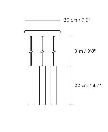 Afmetingen: Pendels: Ø3,4 x H22 cm, totale breedte: 20 cm