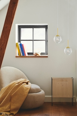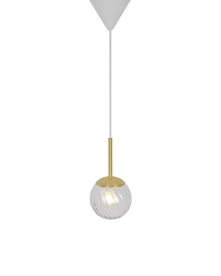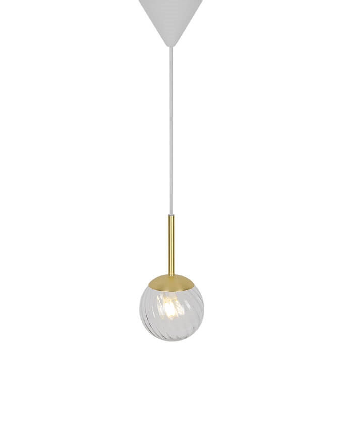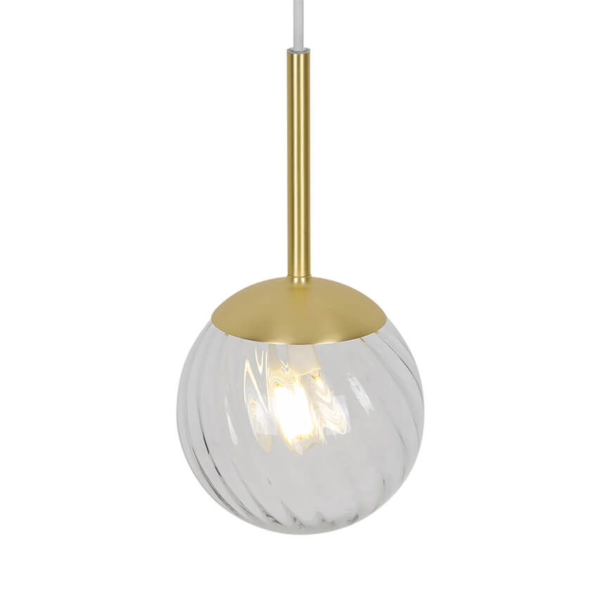 De Chisell hanglamp creëert een prachtig patroon dankzij de gedraaide glazen bol, die het licht rondom de lamp verspreidt. Het glas is mondgeblazen en de lamp heeft mooie messingdetails. Door het handgemaakte mondgeblazen glas kunnen er kleine luchtbellen in het glas voorkomen. Dit geeft de lamp echter zijn eigen karakter en levendige uitstraling.