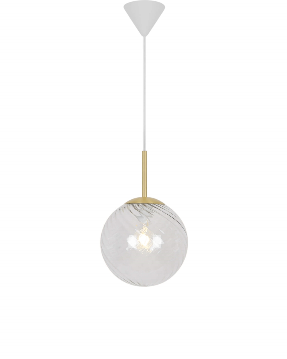De Chisell hanglamp creëert een prachtig patroon dankzij de gedraaide glazen bol, die het licht rondom de lamp verspreidt. Het glas is mondgeblazen en de lamp heeft mooie messingdetails. Door het handgemaakte mondgeblazen glas kunnen er kleine luchtbelletjes in het glas voorkomen. Dit geeft de lamp echter zijn eigen karakter en levendige uitstraling.