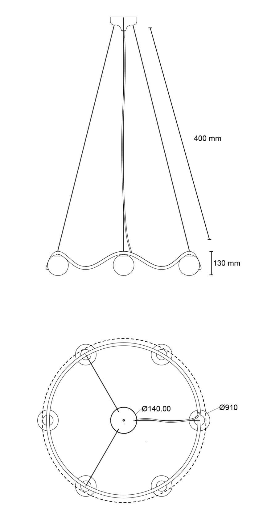 Afmetingen: Ø91 x H13 cm, kappen: Ø11 cm