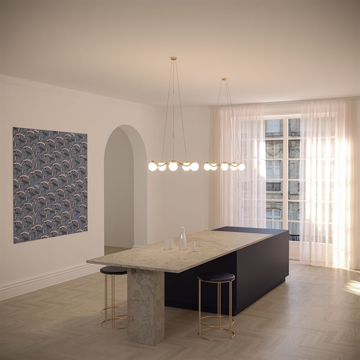 De kroonluchter Circle of Life is verfijnde Scandinavische minimalisme met een elegant uiterlijk geïnspireerd door de ups en downs van het leven. Het sculpturale frame van handgemaakt gepolijst messing heeft organische rondingen en vijf mondgeblazen bolvormige kappen van opaalglas. De kroonluchter verspreidt een zacht licht en is ideaal als verlichting boven de eettafel of als middelpunt in de woonkamer, keuken of hal.