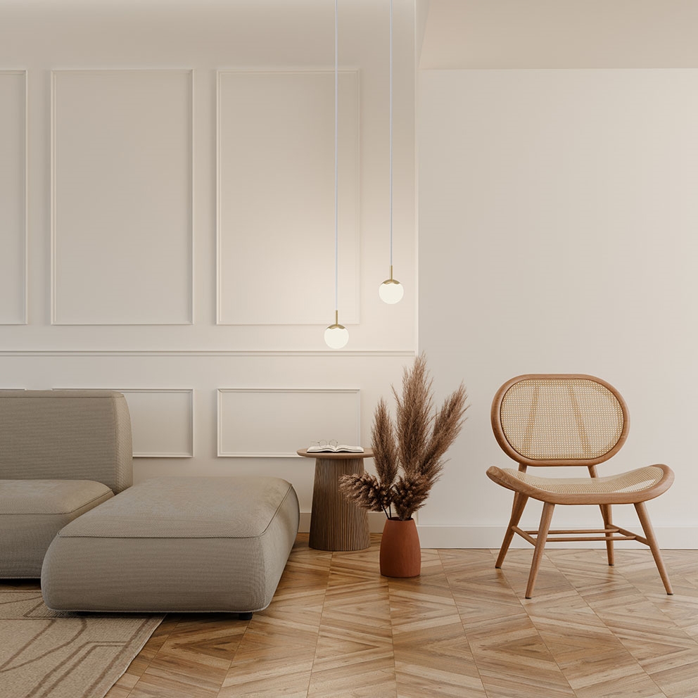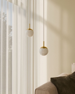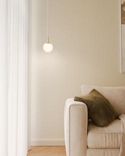 De hanglamp Circle of Life heeft een compact en elegant Scandinavisch design geïnspireerd door de ups en downs van het leven. De lichte, noordse uitstraling van de lamp wordt benadrukt door deze variant met de witte stoffen kabel, terwijl de handgemaakte gepolijste messing top warmte en exclusiviteit aan het ontwerp toevoegt. De bolvormige kap van mondgeblazen opaalglas zorgt voor een zacht en aangenaam licht.