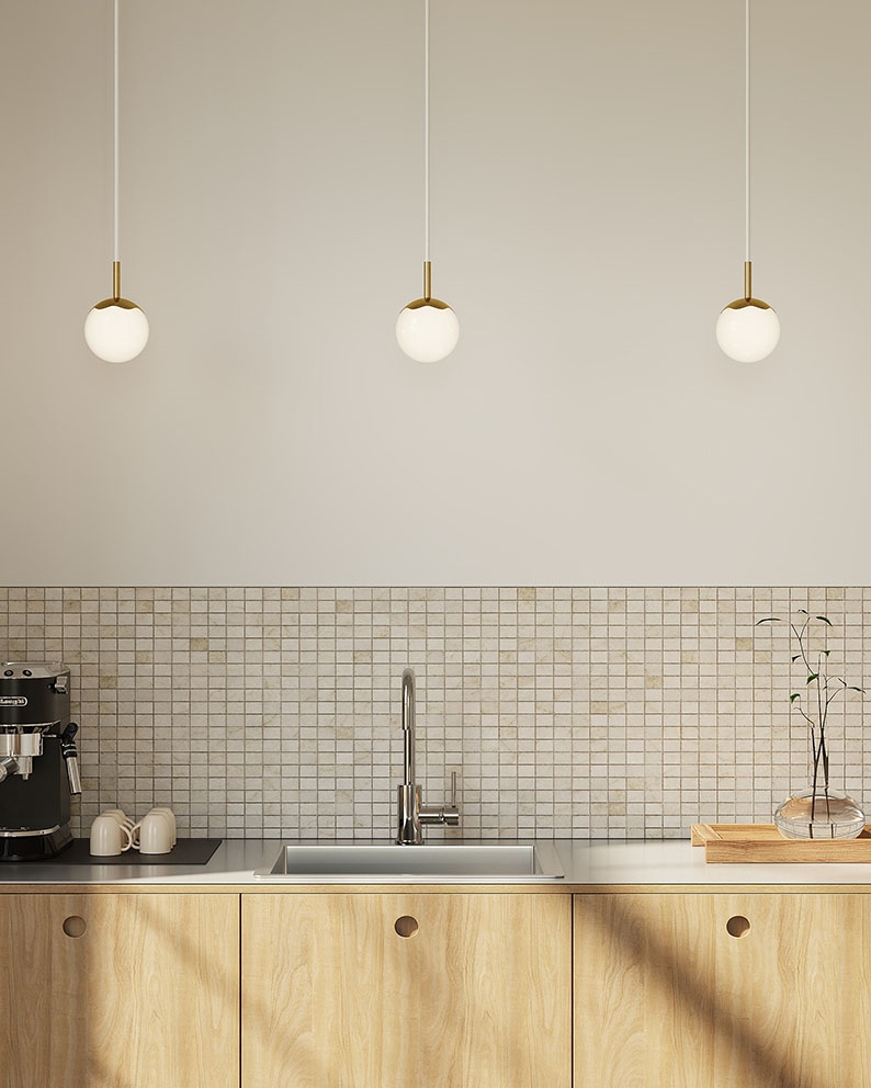 De hanglamp is verkrijgbaar in twee maten met een witte of zwarte kabel. Deze kleine maat is perfect voor kleinere ruimtes en kan alleen of in meerdere aantallen op een rij of in een cluster worden opgehangen. Gebruik bijvoorbeeld Circle of Life als keukenlamp of verlichting boven de eettafel.