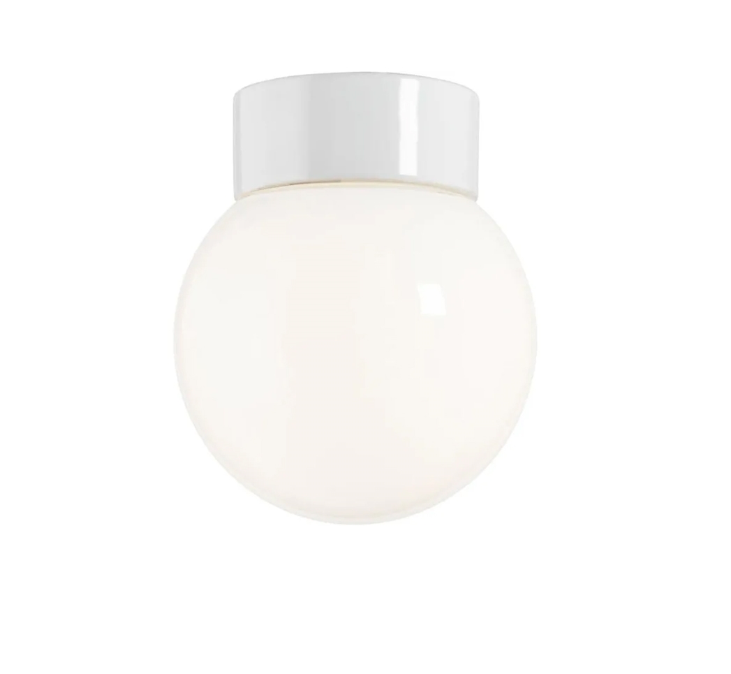 Classic Globe 150 kan worden gebruikt als plafondlamp of wandlamp en is met zijn IP44-classificatie al jaren een favoriet als badkamerlamp. De lamp kan ook worden gebruikt als buitenlamp. Classic Globe combineert functionaliteit en tijdloos design en heeft een kap van glanzend opaalglas en, zoals kenmerkend voor veel Ifö-lampen, een basis van porselein.