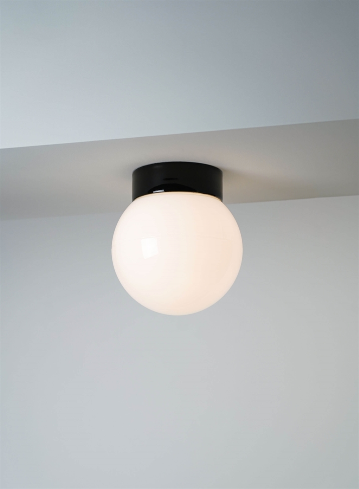 Ifö Electric Classic Globe 200 plafondlamp / wandlamp IP44, zwart/glanzend opaal