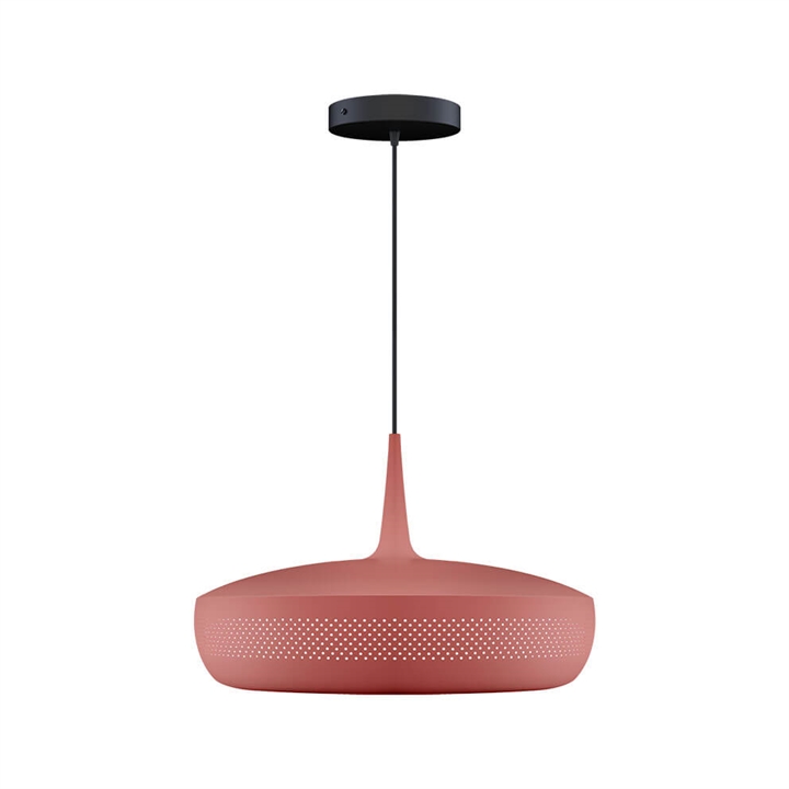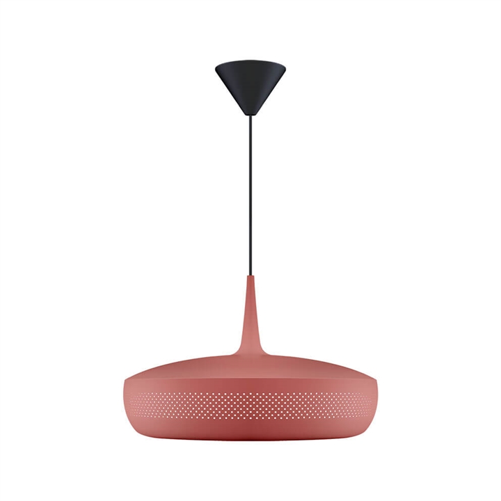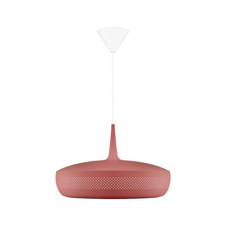 Clava Dine in de kleur rood aarde is een lampenkap die een elegante hanglamp vormt met een exclusieve uitstraling wanneer deze wordt gecombineerd met een ophanging. Het heeft een retro-geïnspireerd ontwerp met een reeks kleine symmetrische gaatjes rondom de kap, gemaakt van aluminium. Gebruik bijvoorbeeld de lampenkap als verlichting boven de eettafel of boven de salontafel in de woonkamer.